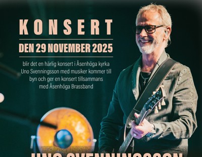 Boka in den 29 november i Åsenhöga kyrka. Uno Svenningsson ger konsert tillsammans medmusiker och Åsenhöga Brassband.